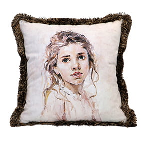 Poduszka z frędzlami 3D Dziewczyna z zielonymi oczami 50*50